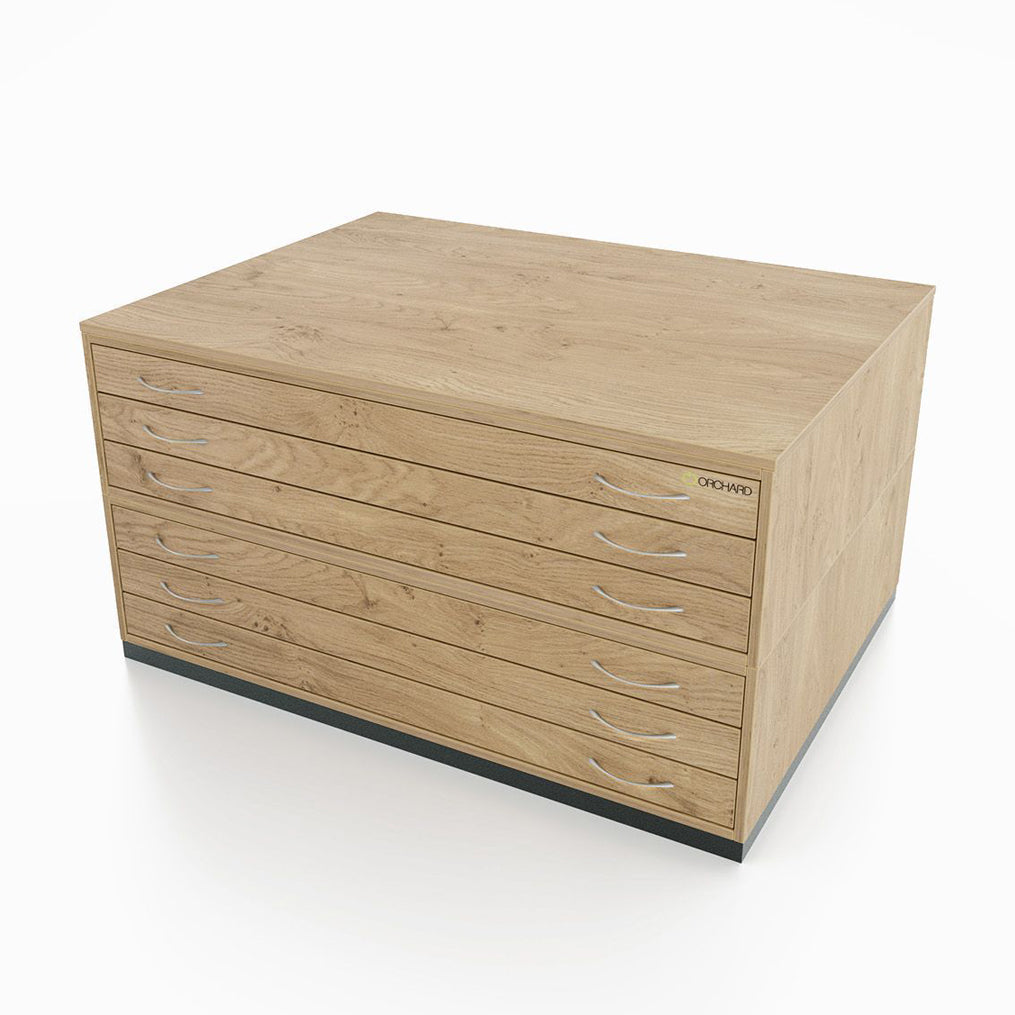 This traditional A0 wooden plan chest with 6 deep drawers is ideal for storing oversized plans, drawings, and prints. Built for durability and smooth operation, each drawer runs on low-friction runners and features silver bow handles. The welded black steel base offers a bold, modern contrast. Available in three classic finishes - grey, oak, and maple - to suit your workspace.