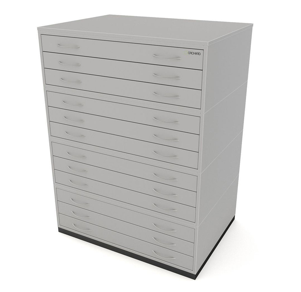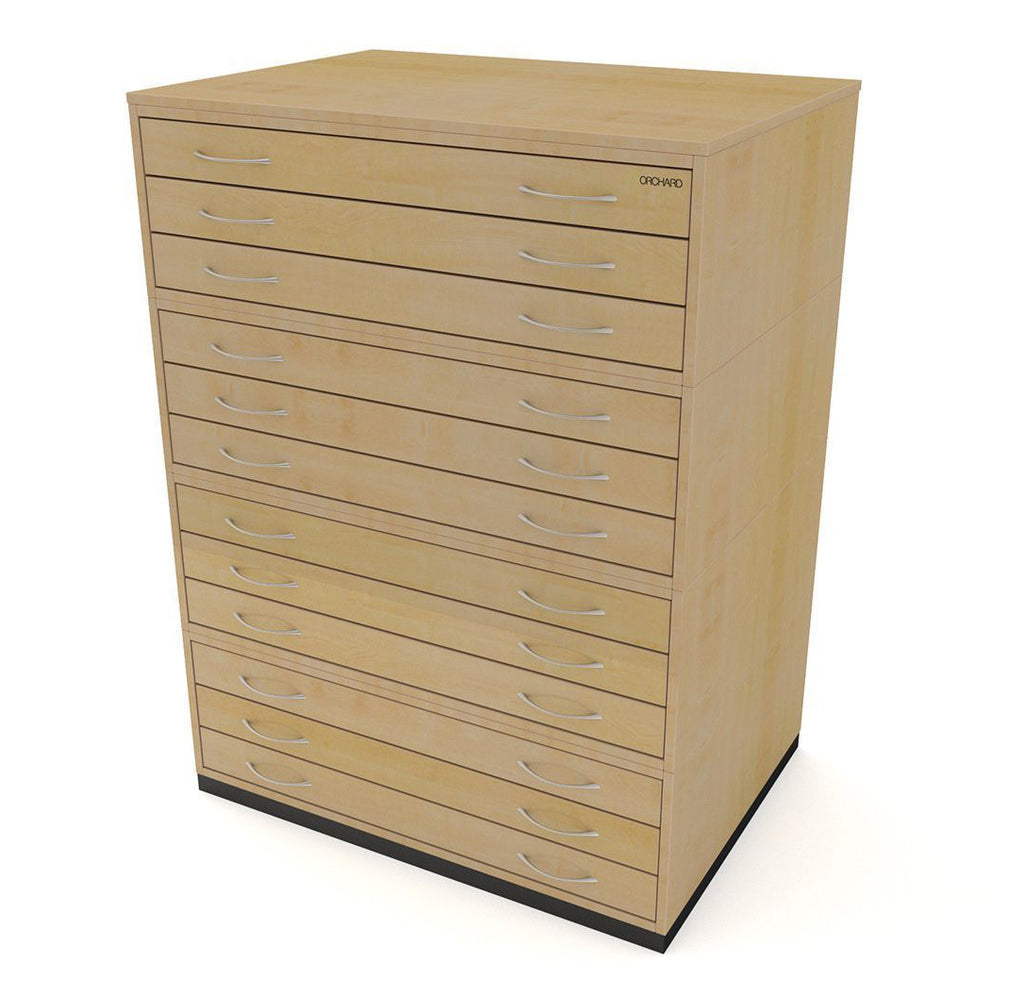Maximise your A1 storage with this 12-drawer wooden plan chest, designed for bulk storage in busy studios and educational settings. It features high-capacity drawers on low-friction runners, strong handles, and a robust black base. Available in three attractive finishes - grey, oak, and maple - for a clean, coordinated look.