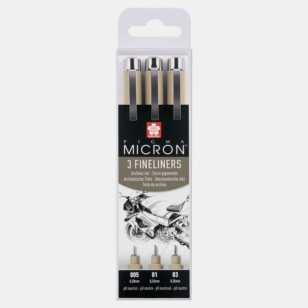 PIGMA Micron, by Sakura, have been making innovative colouring, marking and writing instruments since 1921. Used widely by designers, illustrators, scientists, cartoonists, archivers and hobbyists the unique Sakura Pigma ink is permanent, waterproof, fade resistant, quick drying and pH-neutral.