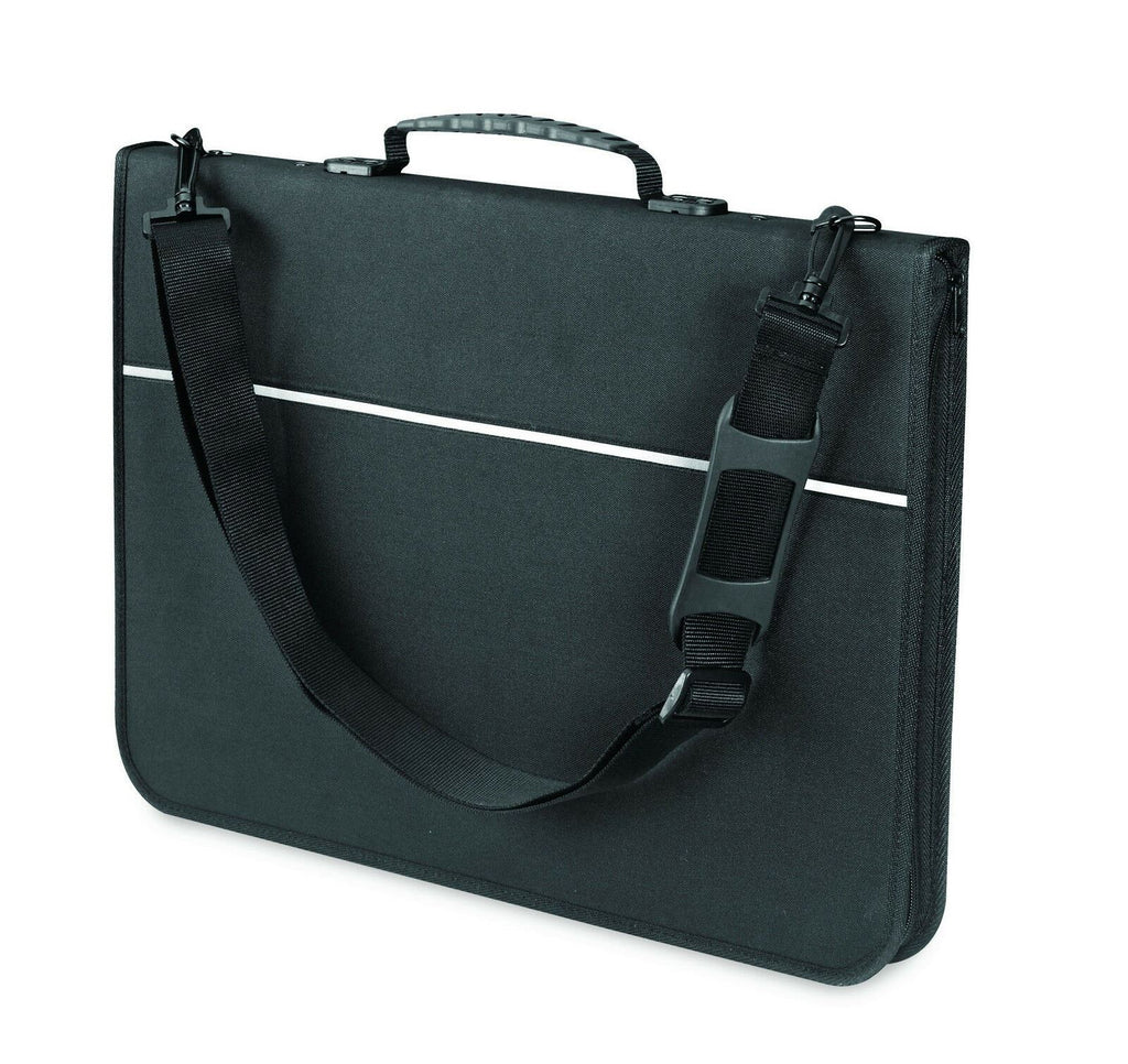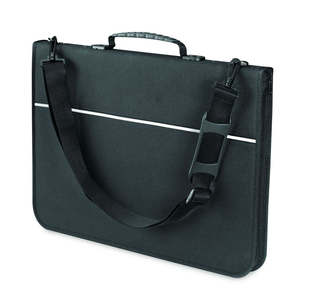 - Lightweight strong polypropylene portfolio with padded nylon outer