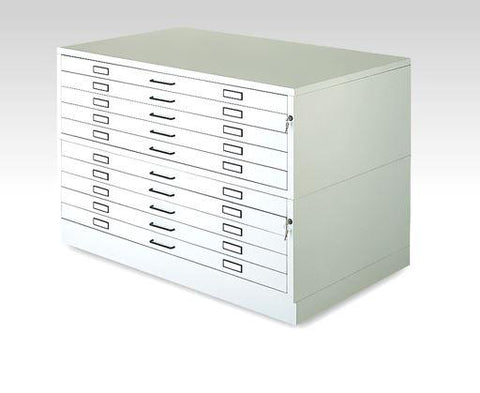 Plan Chests offer a simple storage solution for large drawings and plans. Our range of metal and traditional wooden plan chests offer something to suit all budgets. Standard metal plan chests offer a 5 or 10 drawer option whilst the traditional wooden versions come in 6, 9 or 12 drawer packs in 3 veneered finishes. These flat file storage cabinets are ideal for architects, artists and designers who need to store or archive large sheets neatly and securely. Choose from static or mobile plan chest units, with multiple drawers and robust construction to suit your storage needs.