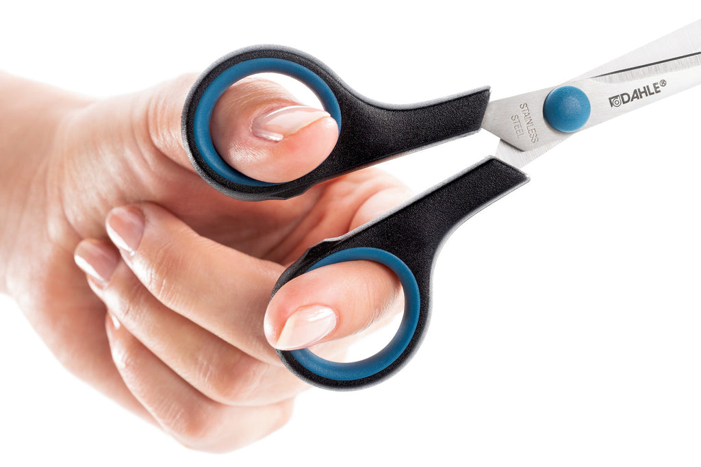 Comfort-grip scissors for cutting comfort with special hardened stainless scissor steel for long life.