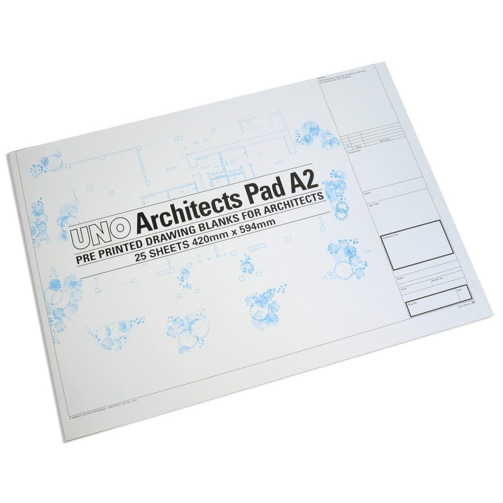 Uno Architects Technical Drawing Blanks are pre-printed on 90gsm tracing paper, with an outer border and a blank section down the right-hand side to add technical drawing specifications.