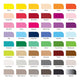 - Set consists of the following colours - Yellow, Canary, Sunflower, Blush, Amber, Bright Orange, Red, Berry Red, Firebrick, Dusky Pink, Maroon, Pale Pink, Rose Pink, Cerise, Magenta, Wild Orchid, Purple, Plum, Lilac, China Blue, Indigo Blue, Royal Blue, Sky Blue, Cool Aqua, Turquoise, Lush Green, Mint Green, Grass, Forest Green, Bright Green, Lime Green, Sandstone, Cocoa, Cinnamon, Henna, Burnt Sienna, Cool Grey 1, Cool Grey 2, Cool Grey 3, Cool Grey 4, Cool Grey 5, Warm Grey 1, Warm Grey 2, Warm Grey 3, Warm Grey 4, Warm Grey 5, Black and Blender.